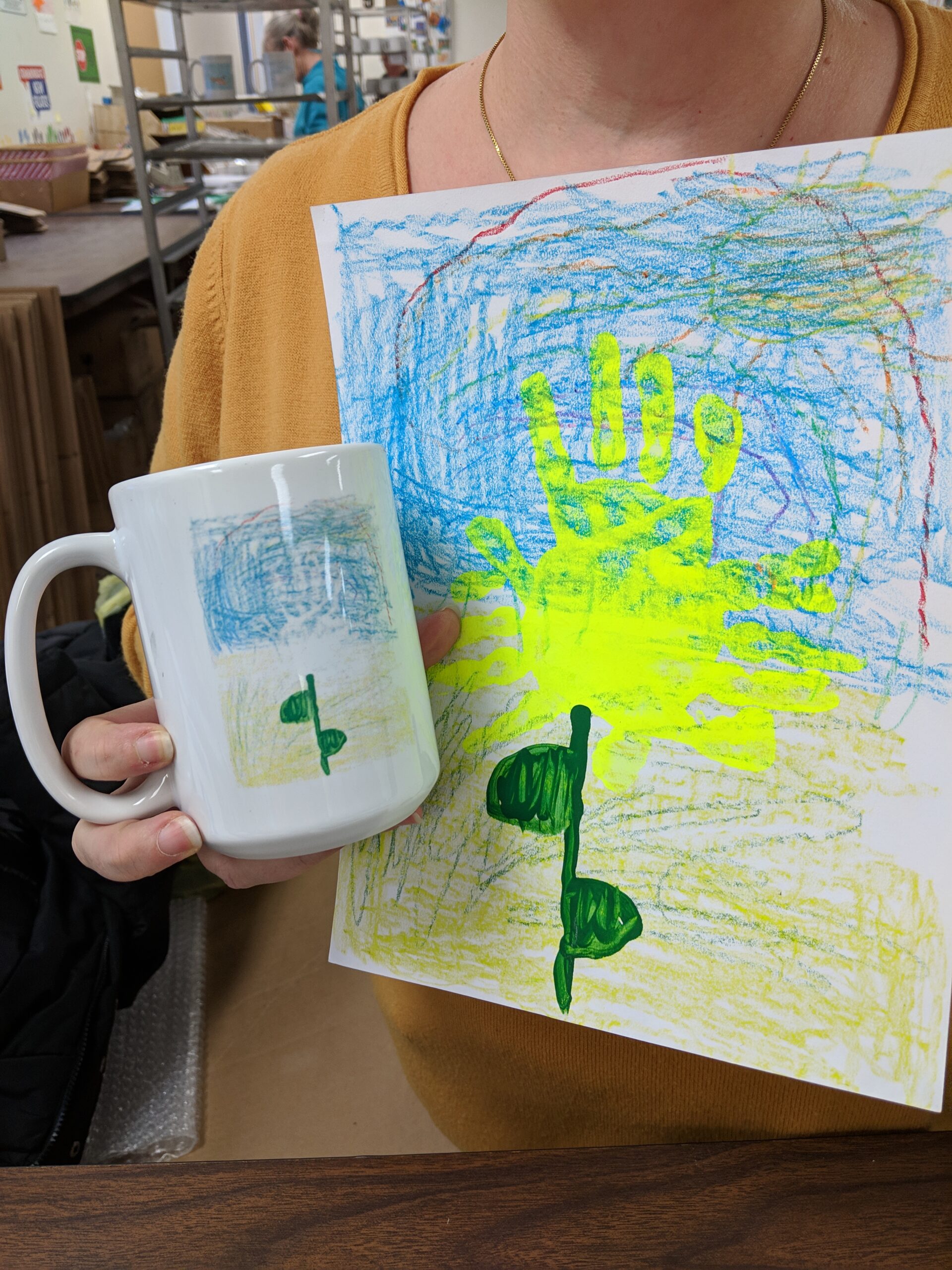 Our products are designed for artwork created on 8½” x 11″ paper to ensure proper placement and proportions. Using a different size throws everything off—we don’t crop or alter artwork to make it fit. Instead, any art submitted on the wrong size paper will be returned.