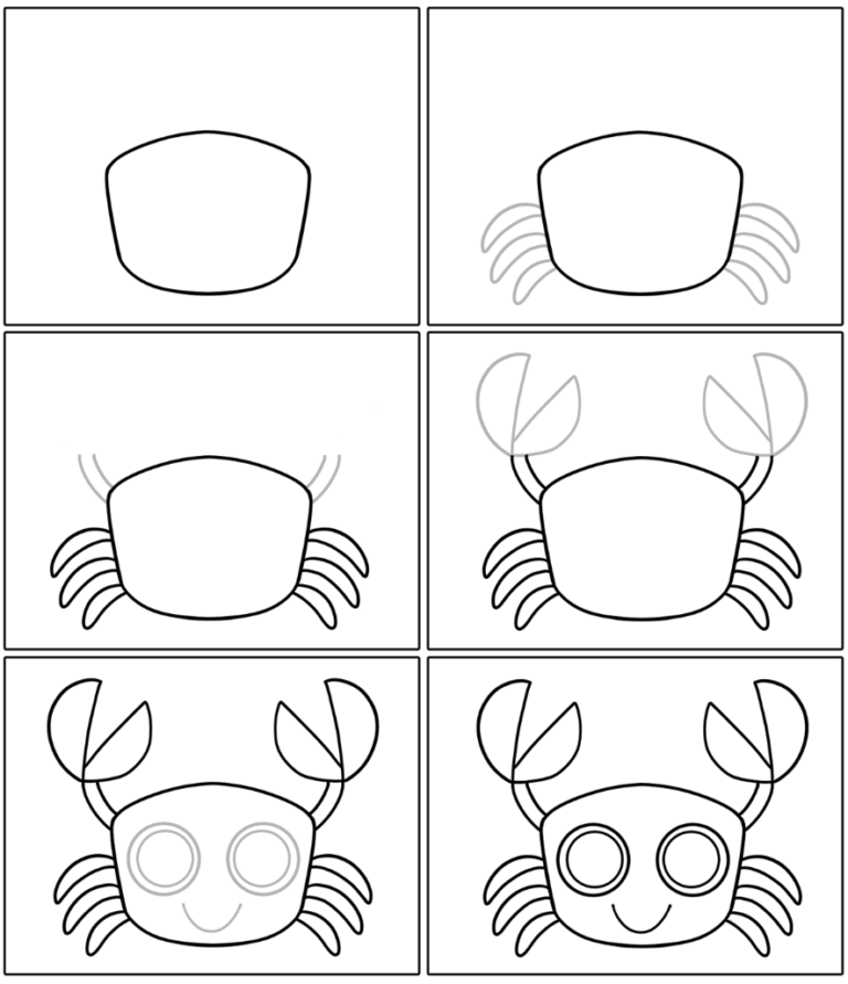 - Draw the crab’s face.